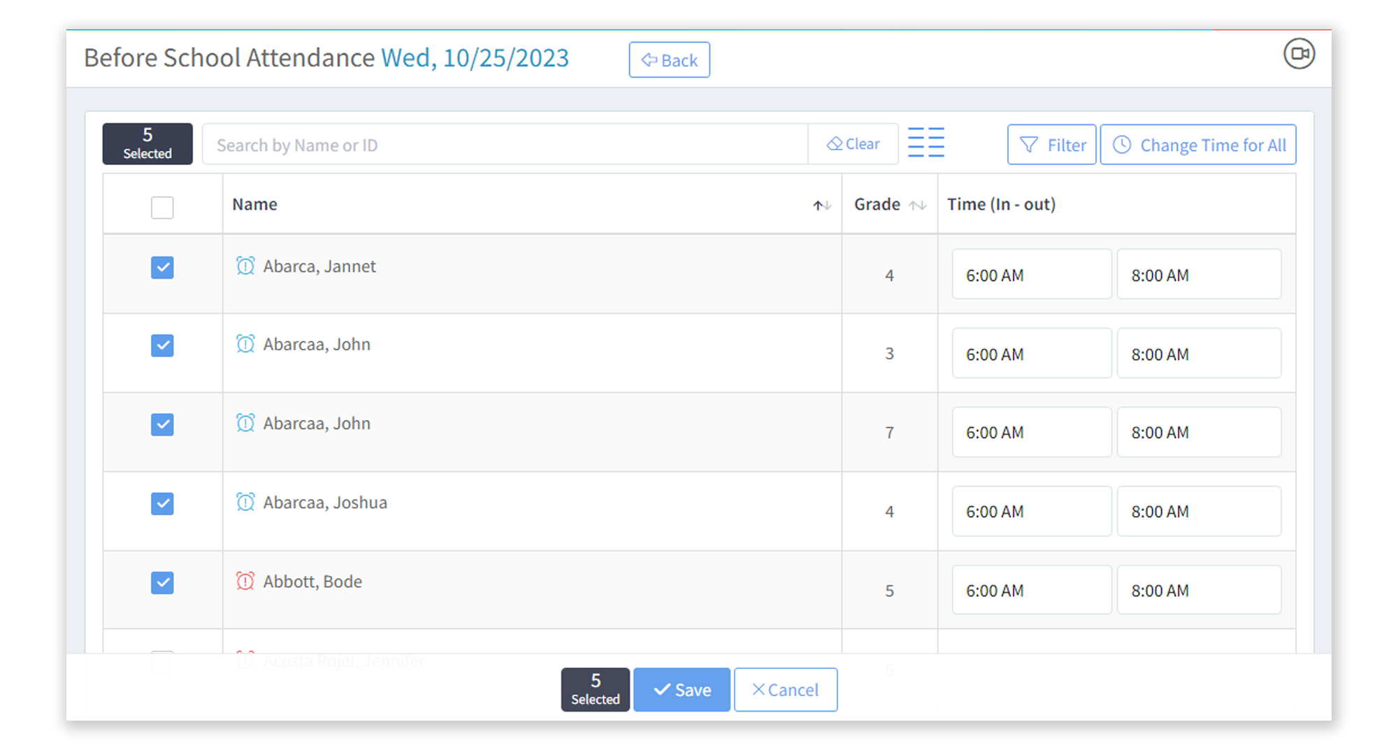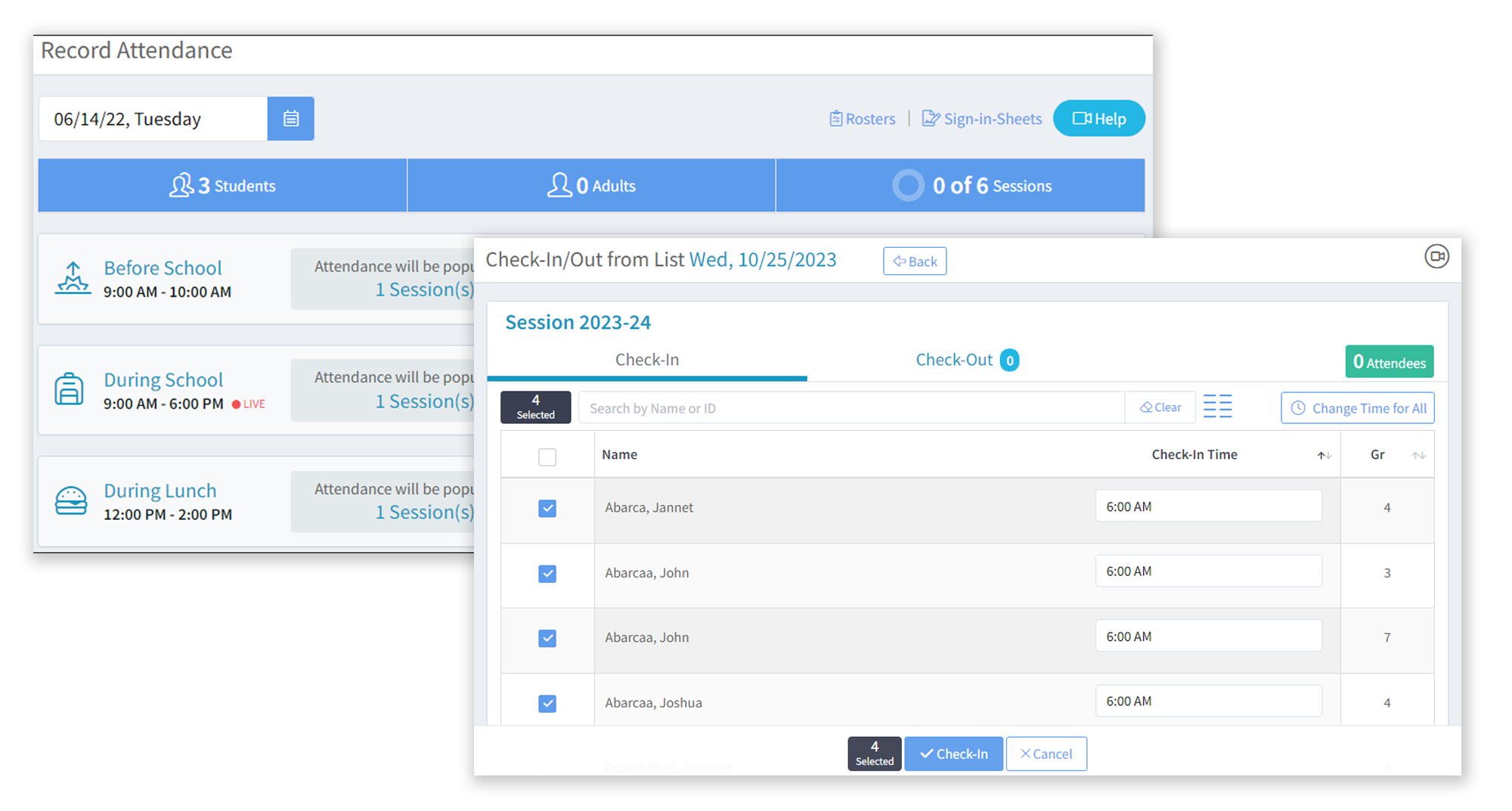 With the Program Attendance mode, student attendance can be recorded once per program (e.g., before and after school programs).